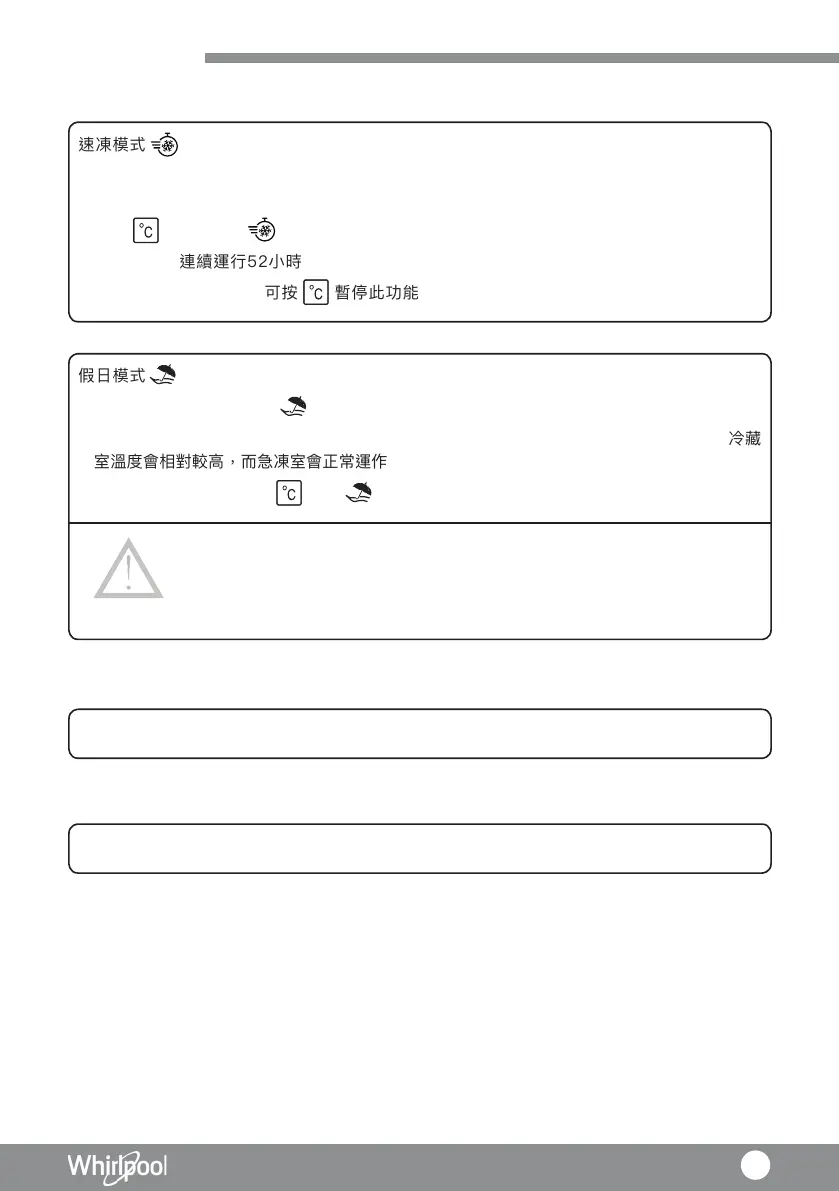 •若在長時間不使用雪櫃的情況下,可選用假日模式。在進行假日模式時,為節約能源,冷藏