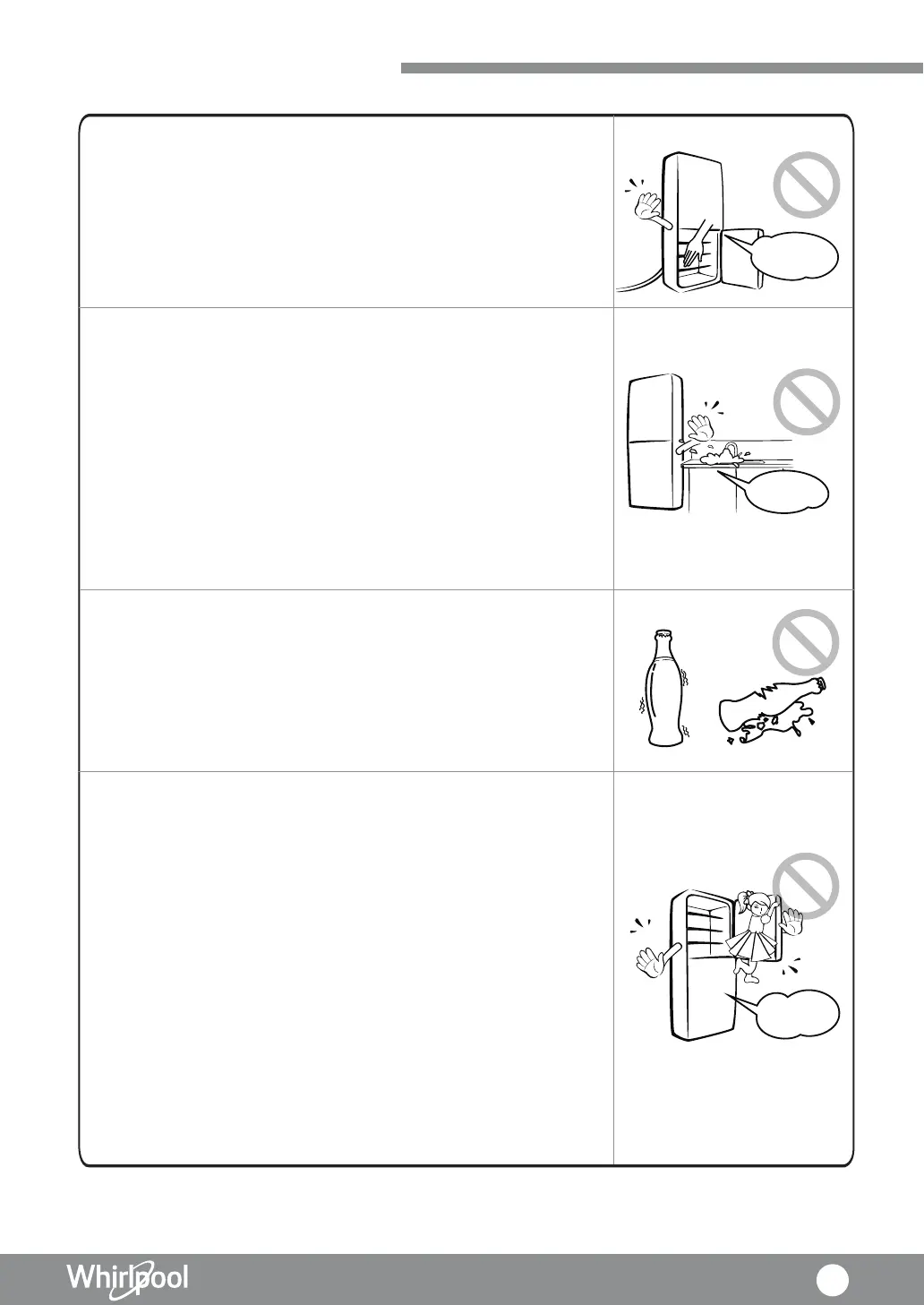 Do not hang on the doors to avoid danger of tilt of cabinet or fall off of