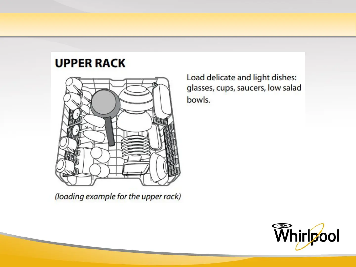 Whirlpool WFC 3C26 - Loading the Racks - Upper Rack; Upper Rack Loading Example