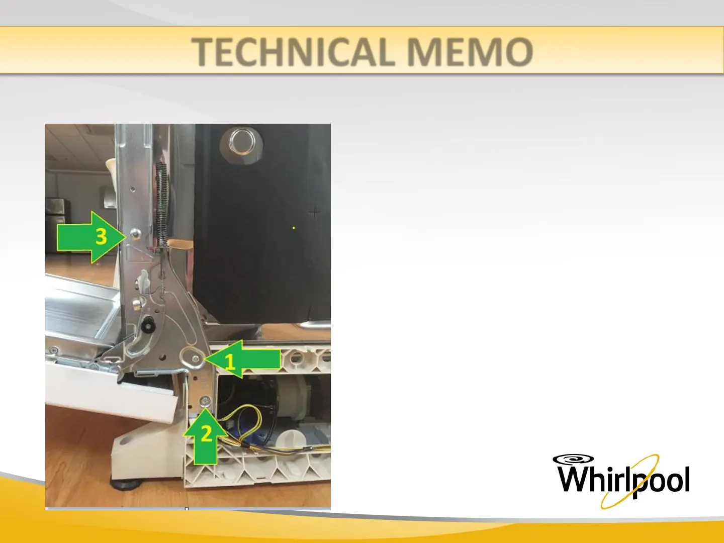 Whirlpool WFC 3C26 - Technical Memo: Door Removal - Hinges; Final Hinge Screw Detachment