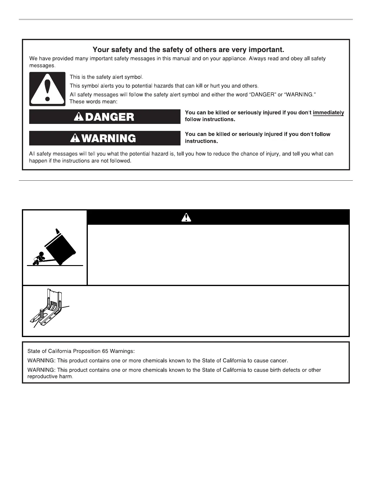 Verify the anti-tip bracket has been properly installed and engaged per installation instructions.