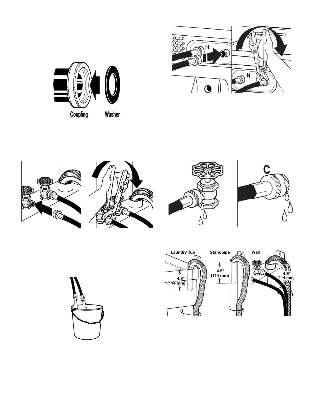 IMPORTANT: 4.5" (114 mm) of drain hose should be inside