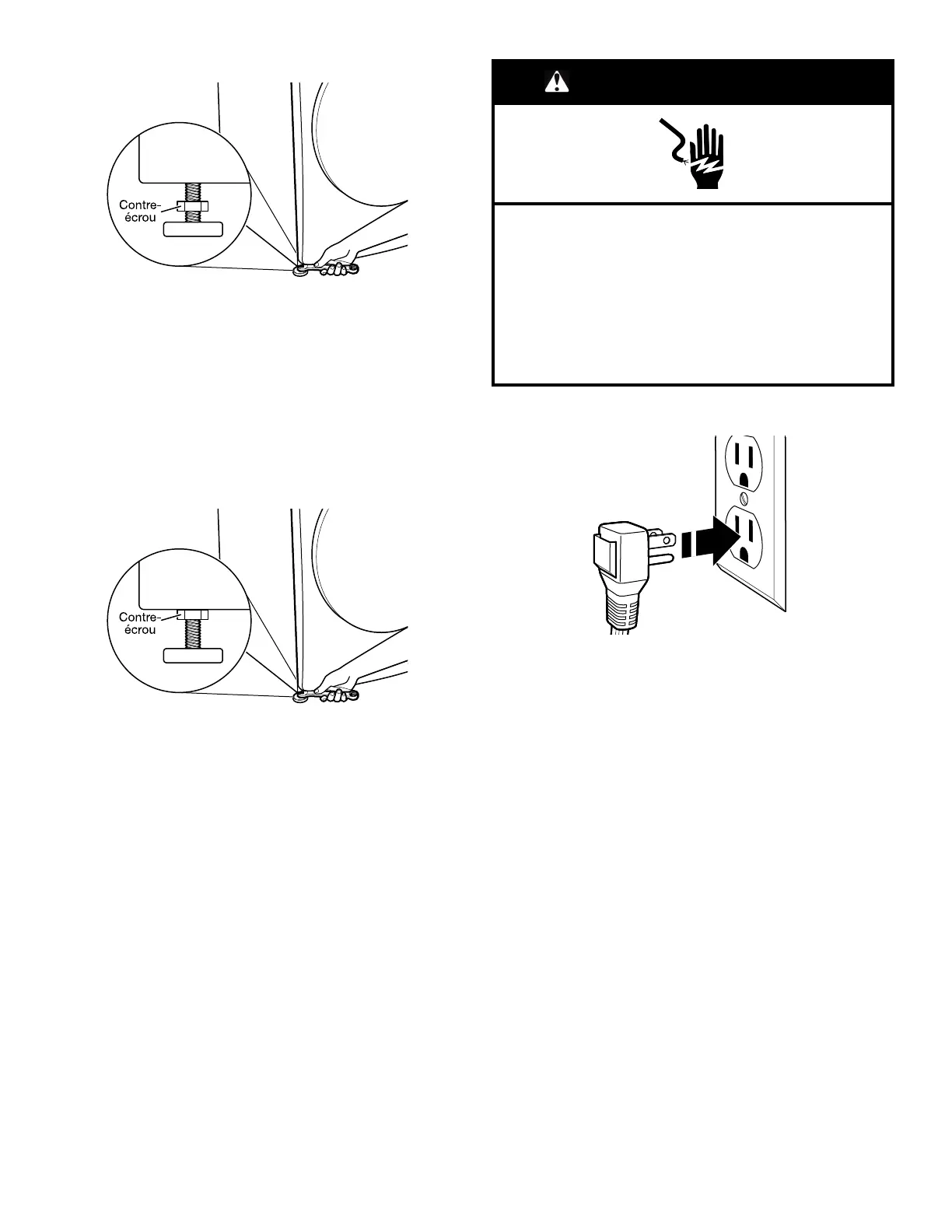 (50 mm) du bas des pieds au bas de l’armoire. Contrôler à