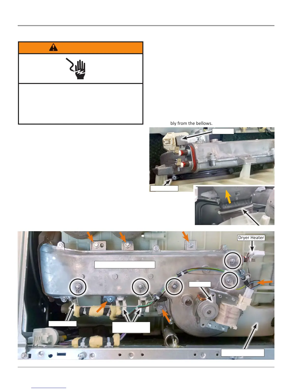 6. Disconnect harnesses from the dryer heater, fan motor,