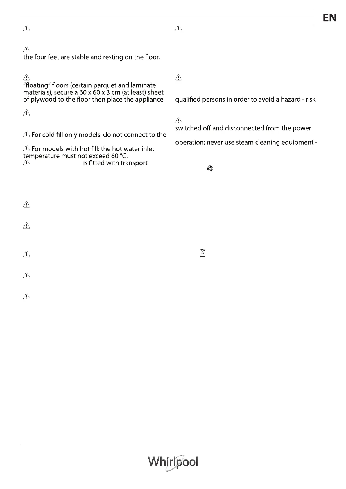 WARNING: Ensure that the appliance is
