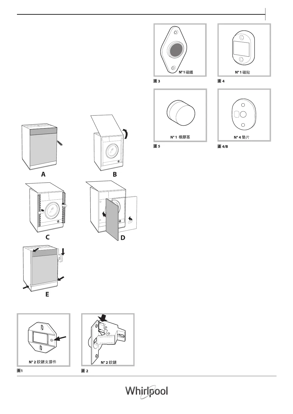 - 將磁鐵插入鉸鏈另一側的頂孔,並用兩粒B型