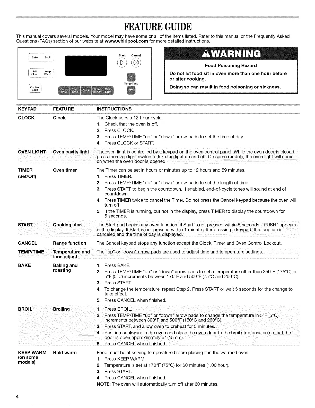 CANCEL Range function The Cancel keypad stops any function except the Clock, Timer and Oven Control Lockout.
