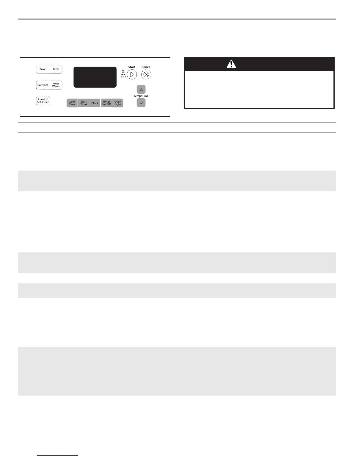 START Cooking start The Start pad begins any oven function. If Start is not pressed within 5 seconds, “PUSH” appears