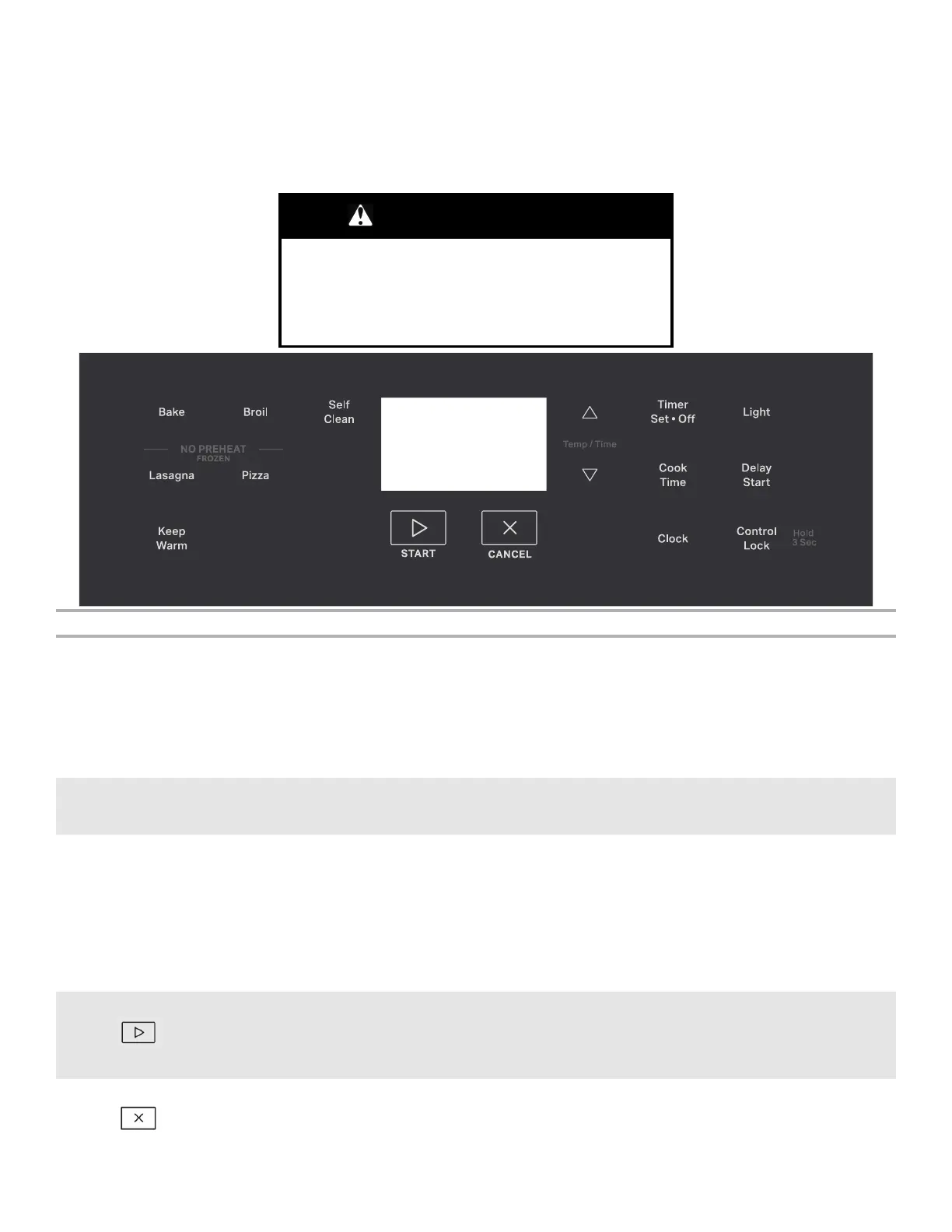 El botón START (INICIO) inicia cualquier función del horno. Si no se presiona el botón