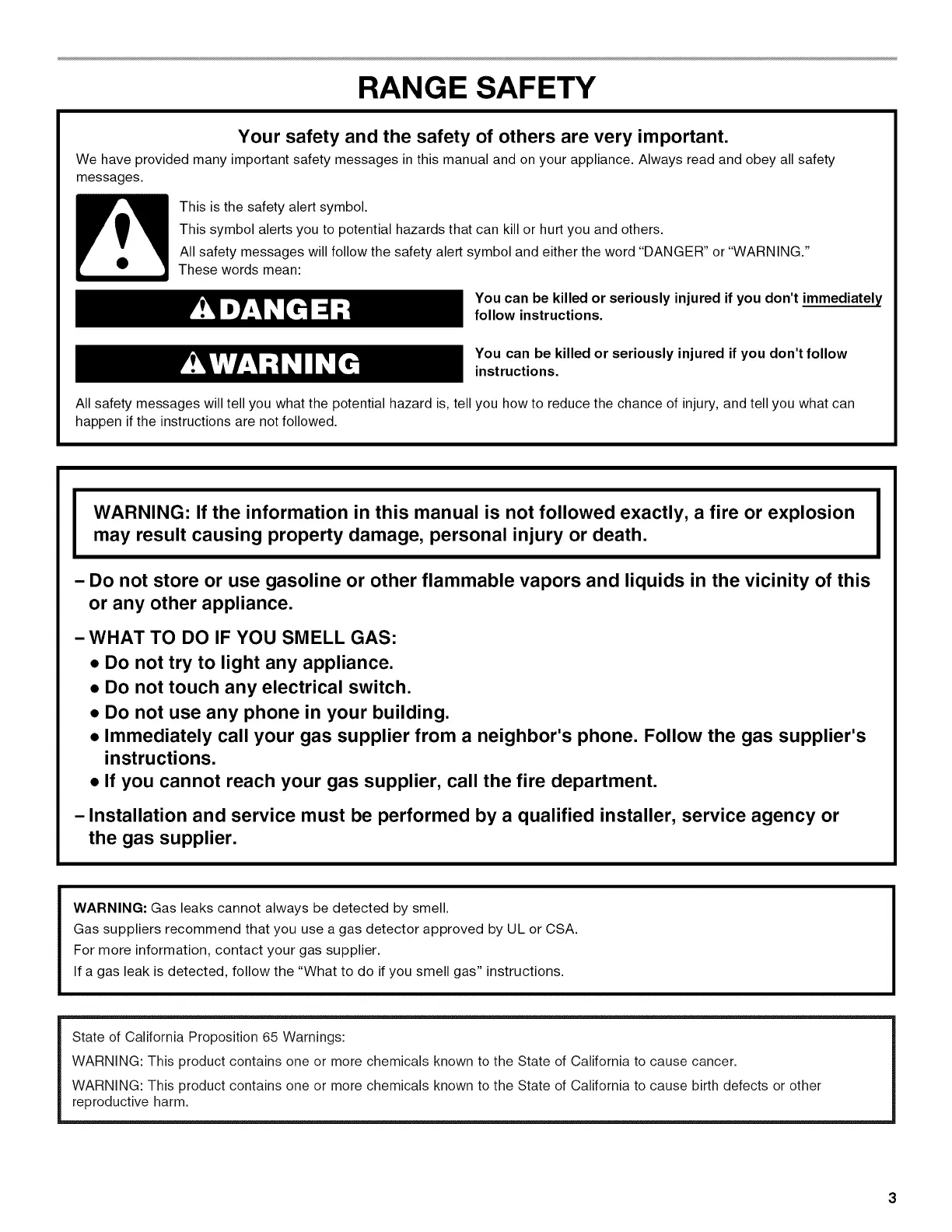 WARNING: Gas leaks cannot always be detected by smell.