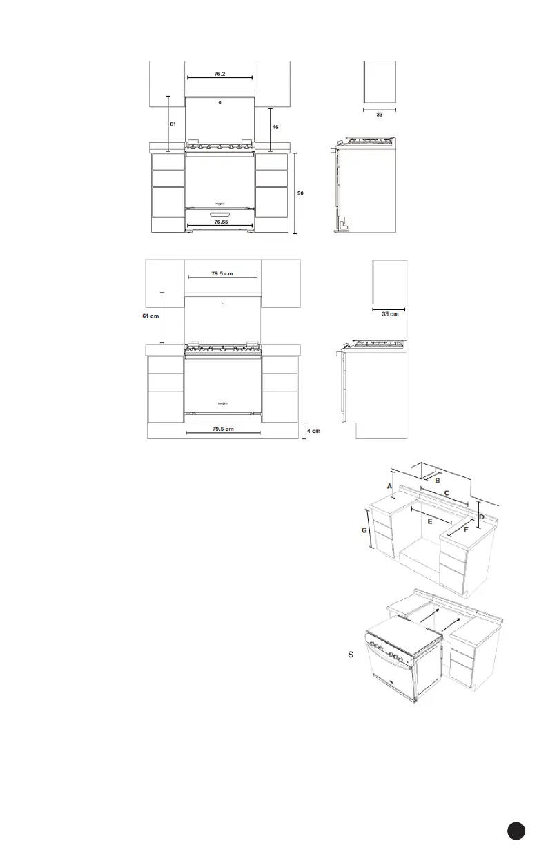 C) 79.5 cm ancho mínimo requerido en le mueble superior.