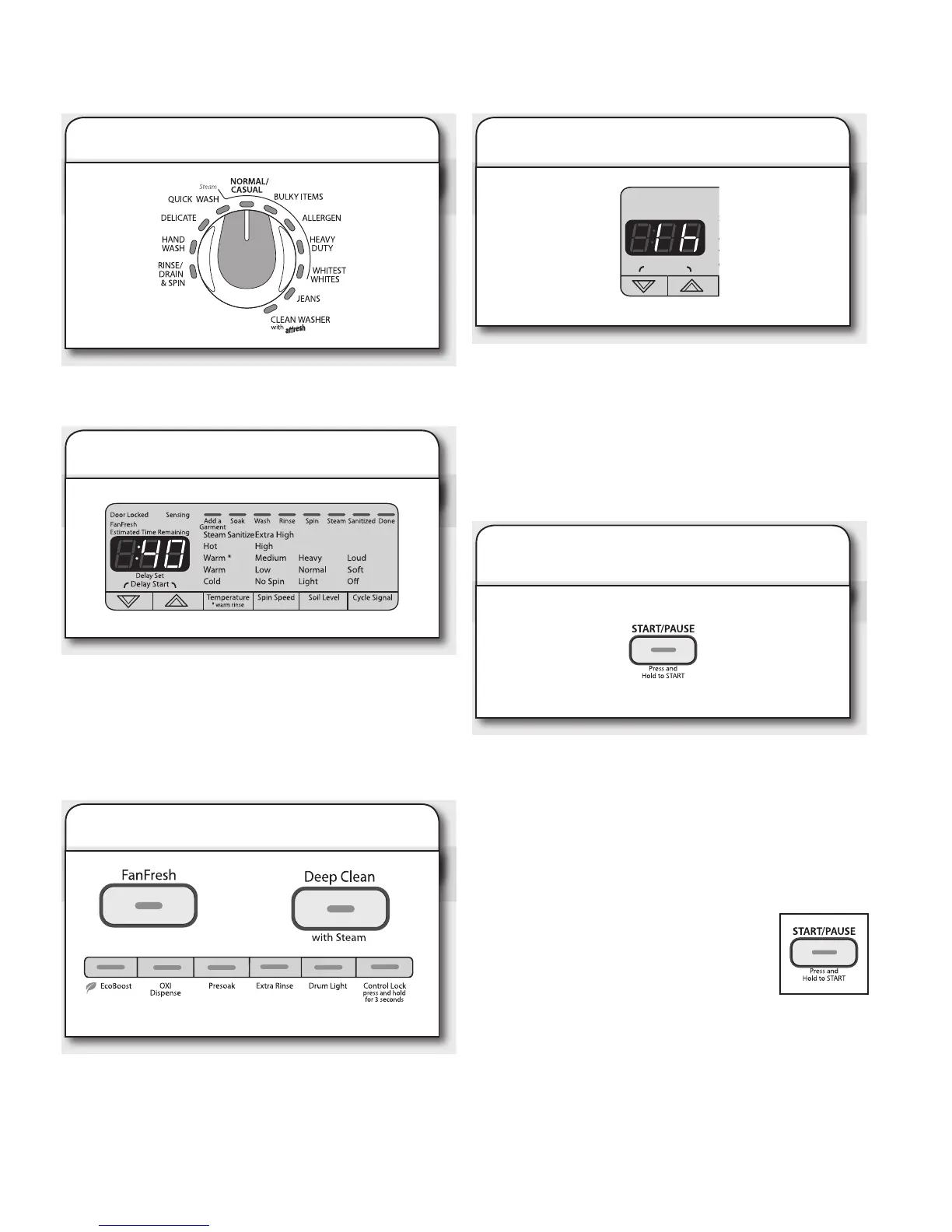 Press and hold the START/PAUSE button to start the wash