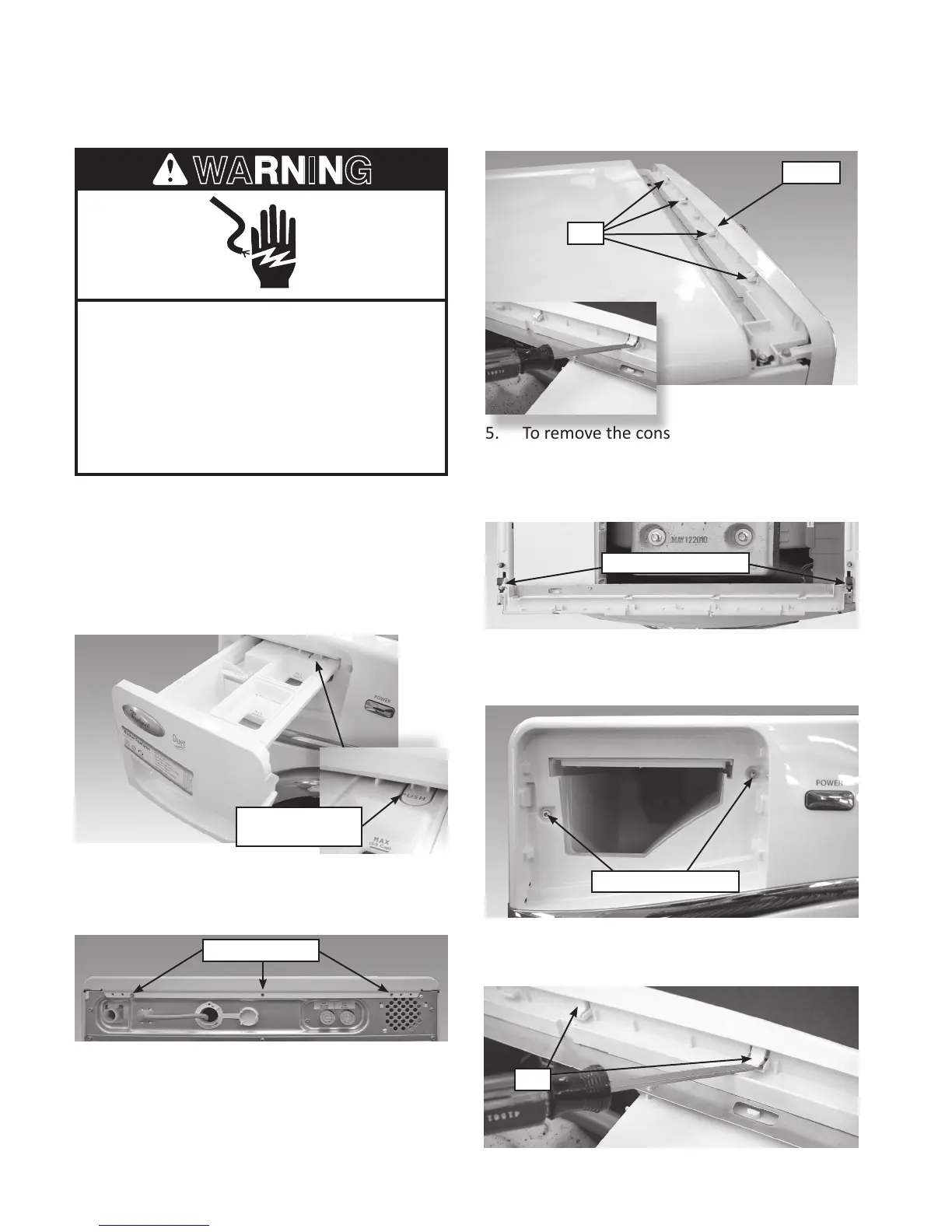 1. Unplug washer or disconnect power.