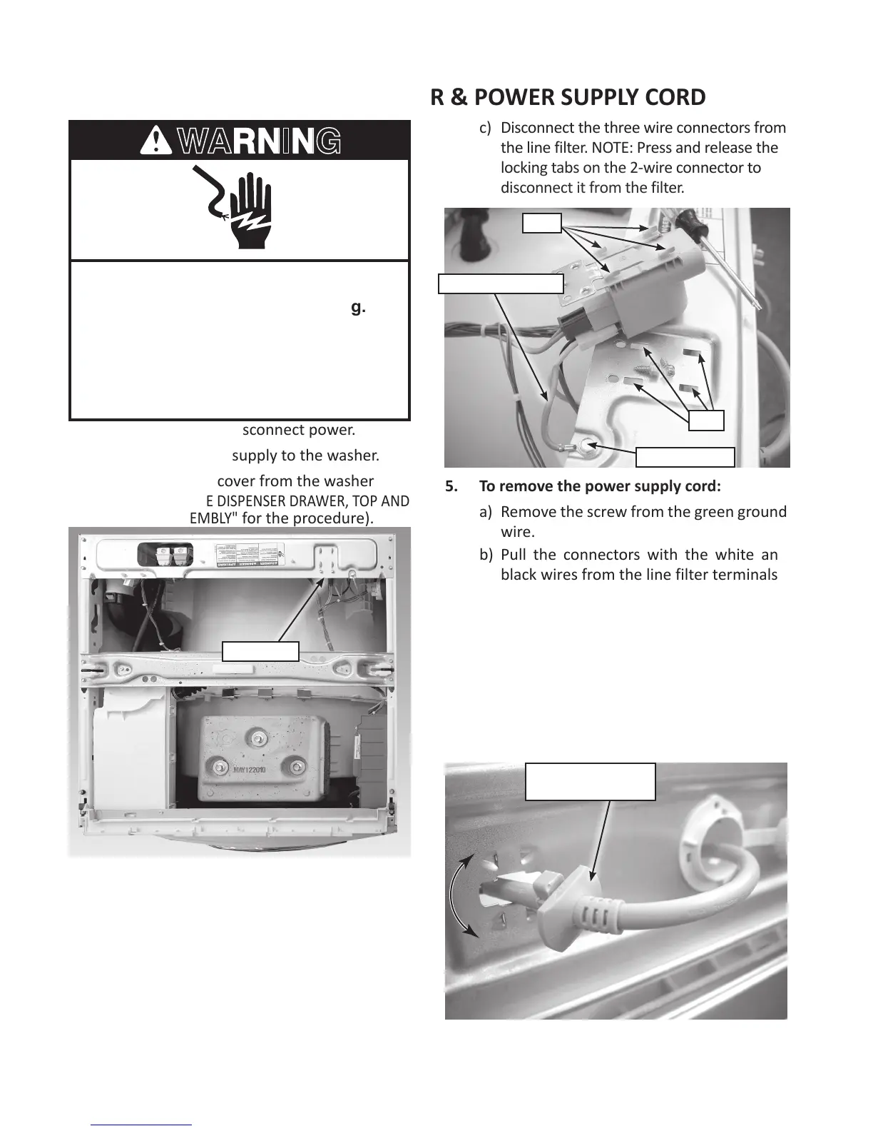 1. Unplug washer or disconnect power.