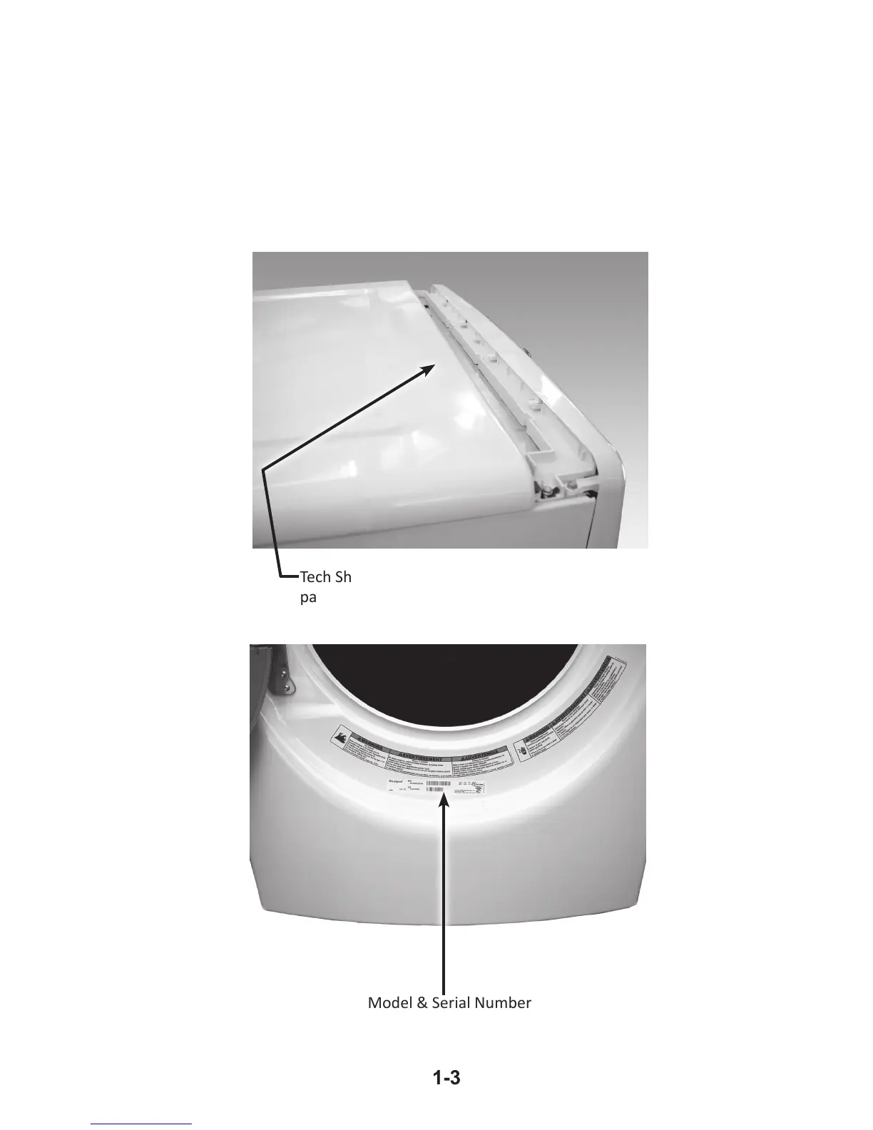 Whirlpool WFW94HEX - Model & Serial Number Label and Tech Sheet Locations