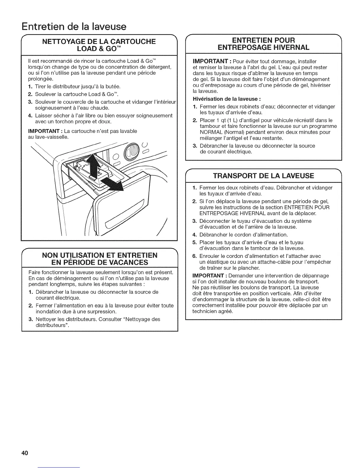 de gel. Si la laveuse doit faire I'objet d'un d6m6nagement