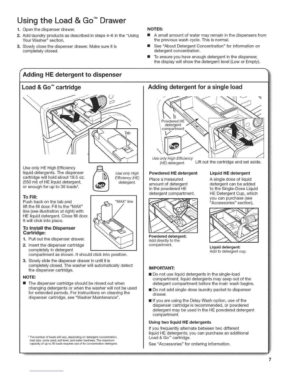 capacity of up to 36 loads requires use of 6x concentration detergent.
