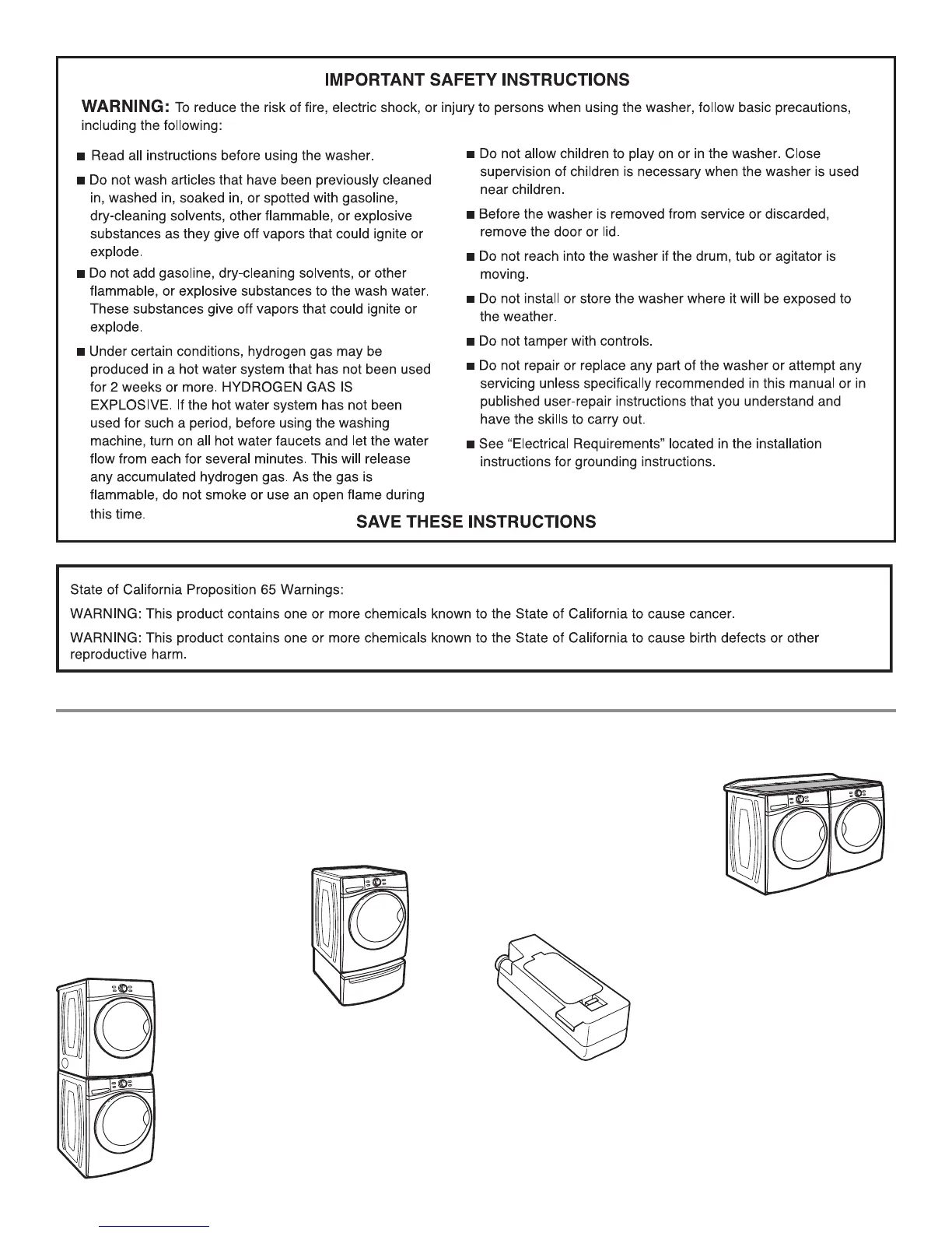 Enhance your new washer and dryer with the following genuine