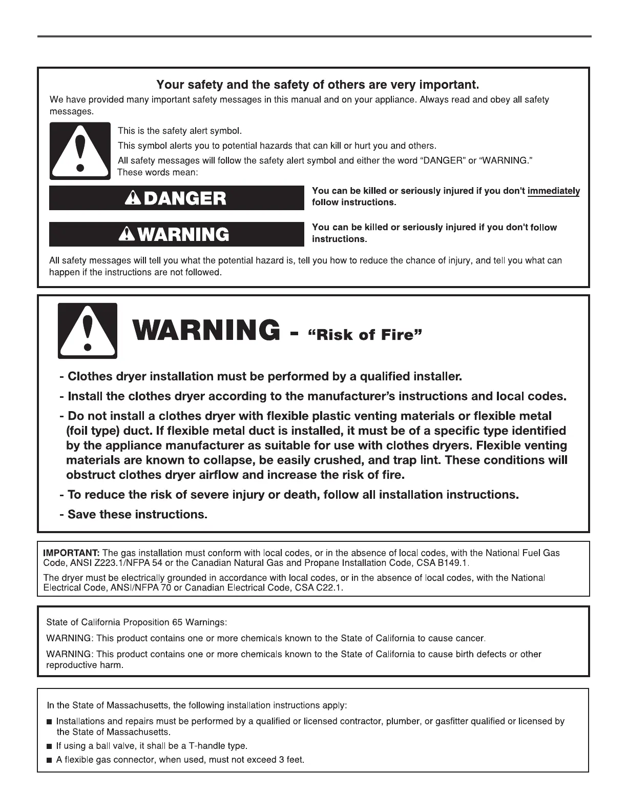 Whirlpool WGD4985EW - DRYER SAFETY; General Safety Messages; Risk of Fire Warning