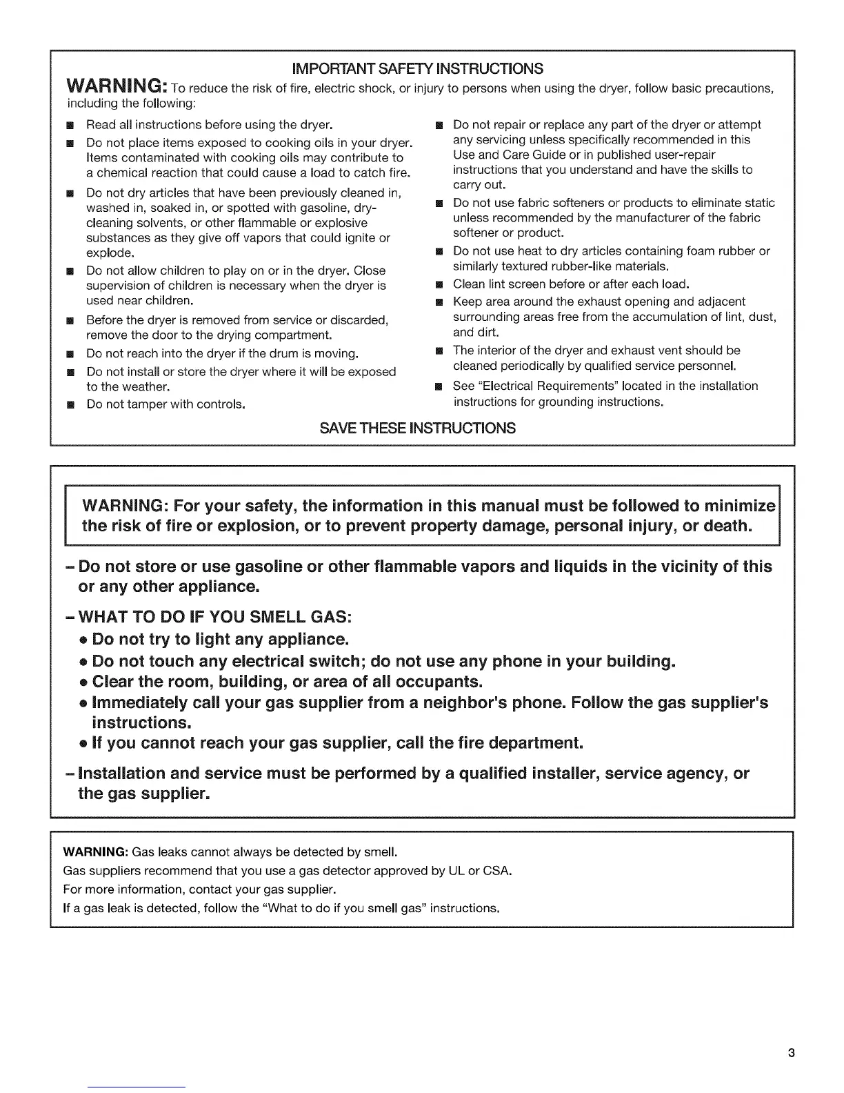 WARNING." To reduce the risk of fire, electric shock, or injury to persons when using the dryer, follow basic precautions,