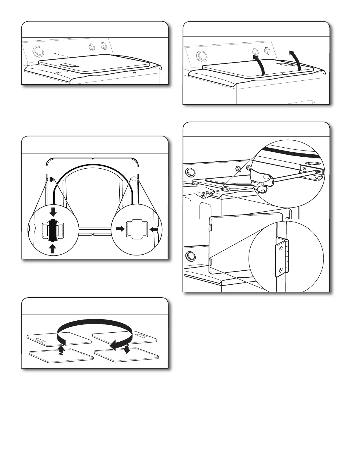Reattach door hinges to dryer door so that the larger hole is