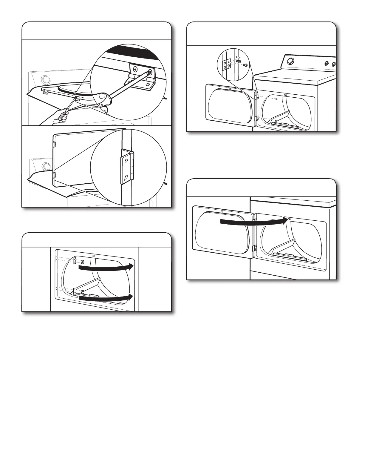Reattach door hinges to dryer door so that the larger hole is