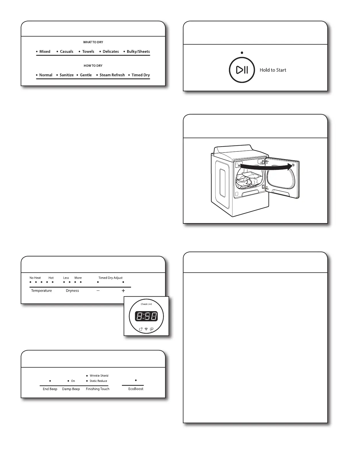 First select a cycle from the “What to Dry” (Automatic cycles) and