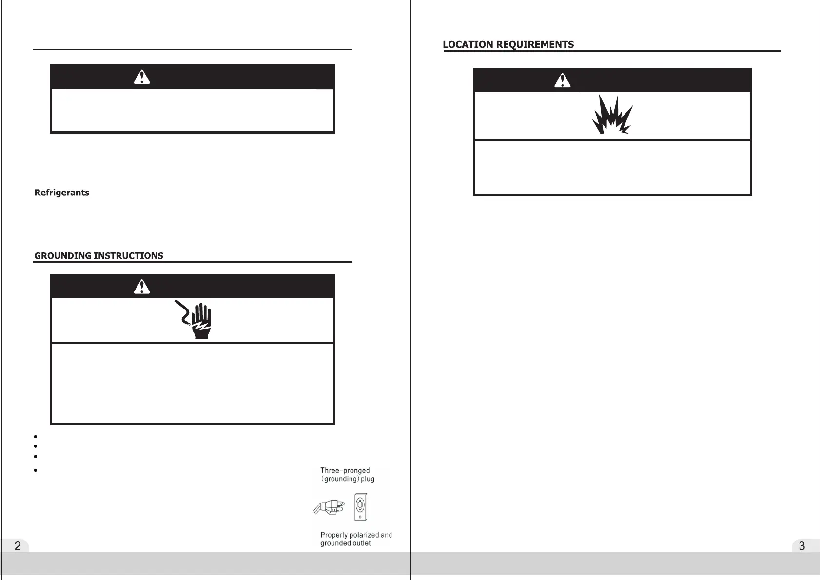 Refrigerator must be plugged into a properly installed grounded 3 prong outlet.