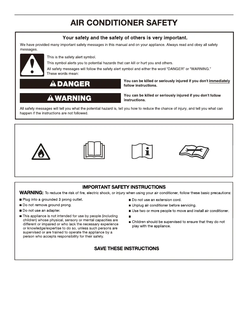 Whirlpool WHAT122-2BW - Air Conditioner Safety; Safety Alert Symbol; IMPORTANT SAFETY INSTRUCTIONS
