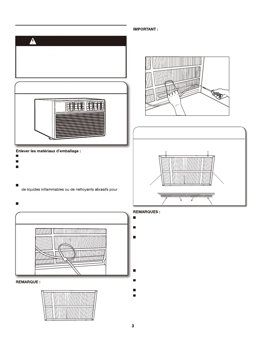 Manipuler avec soin le climatiseur pendant le déballage.