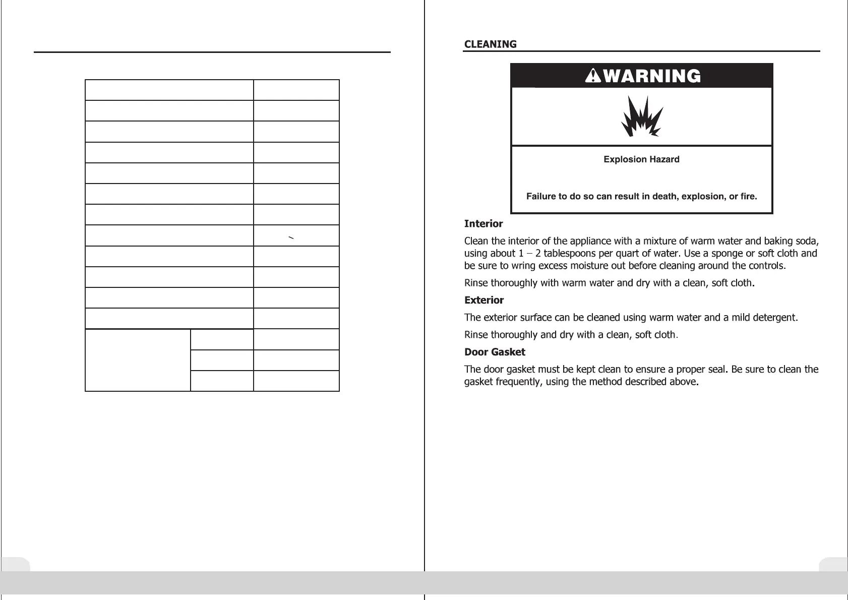 Whirlpool WHB36S - Product Specifications; Cleaning and Maintenance; Interior & Exterior Cleaning; Door Gasket Cleaning