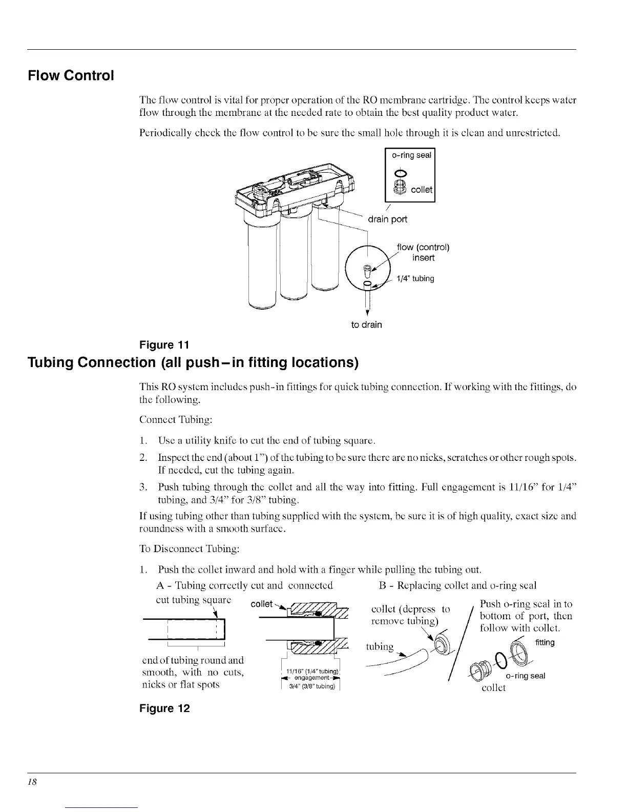 This RO system includes push-in fittings for quick tubing connection. If working with the fittings, do