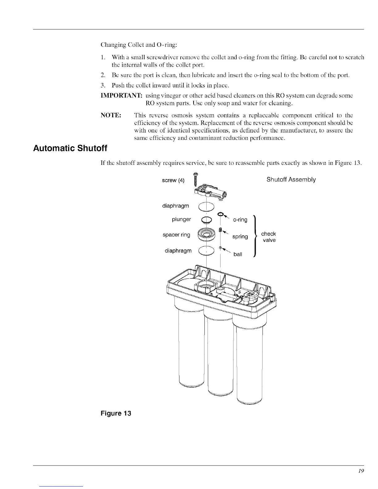 IMPORTANT: using vinegar or other acid based cleaners on this RO system can degrade some