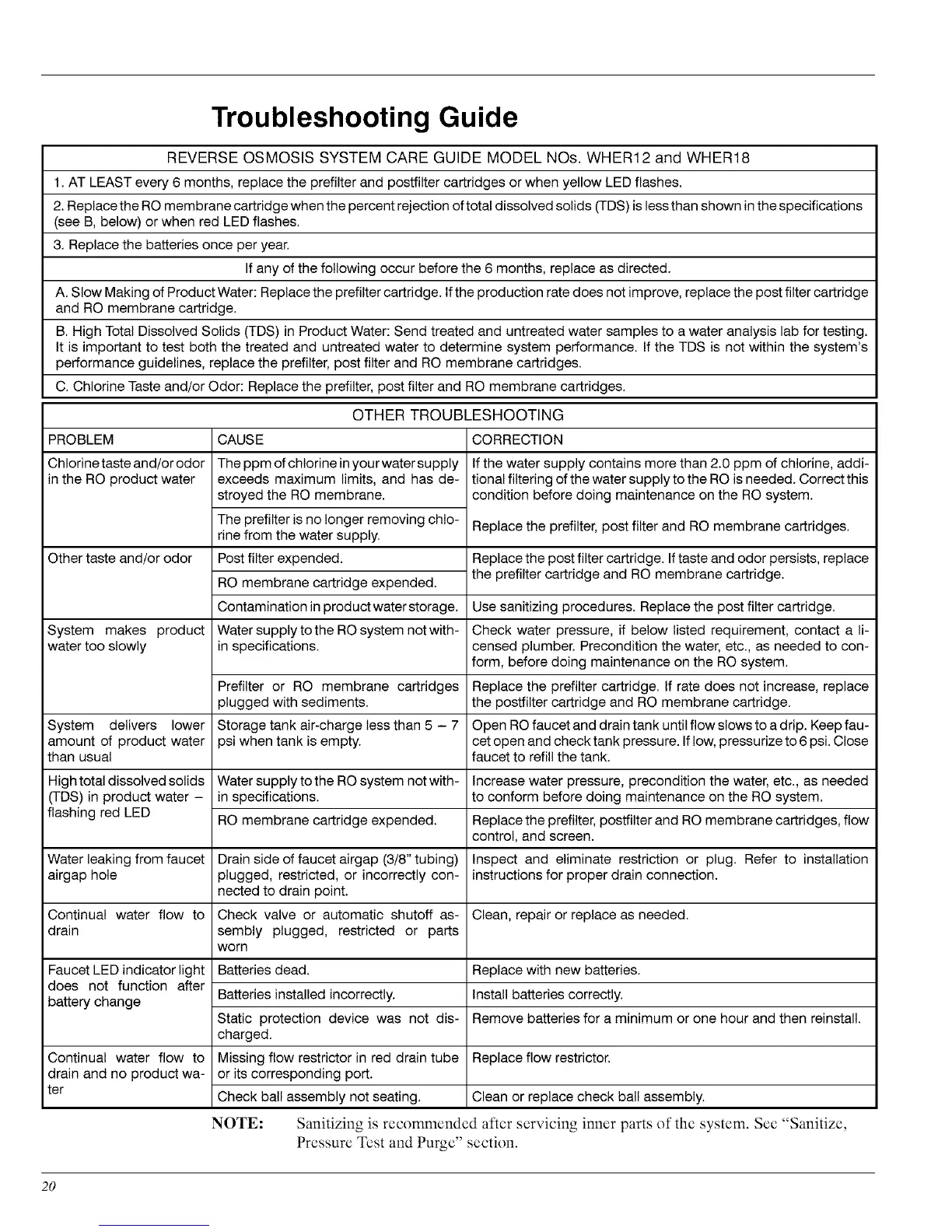 REVERSE OSMOSIS SYSTEM CARE GUIDE MODEL NOs. WHER12 and WHER18