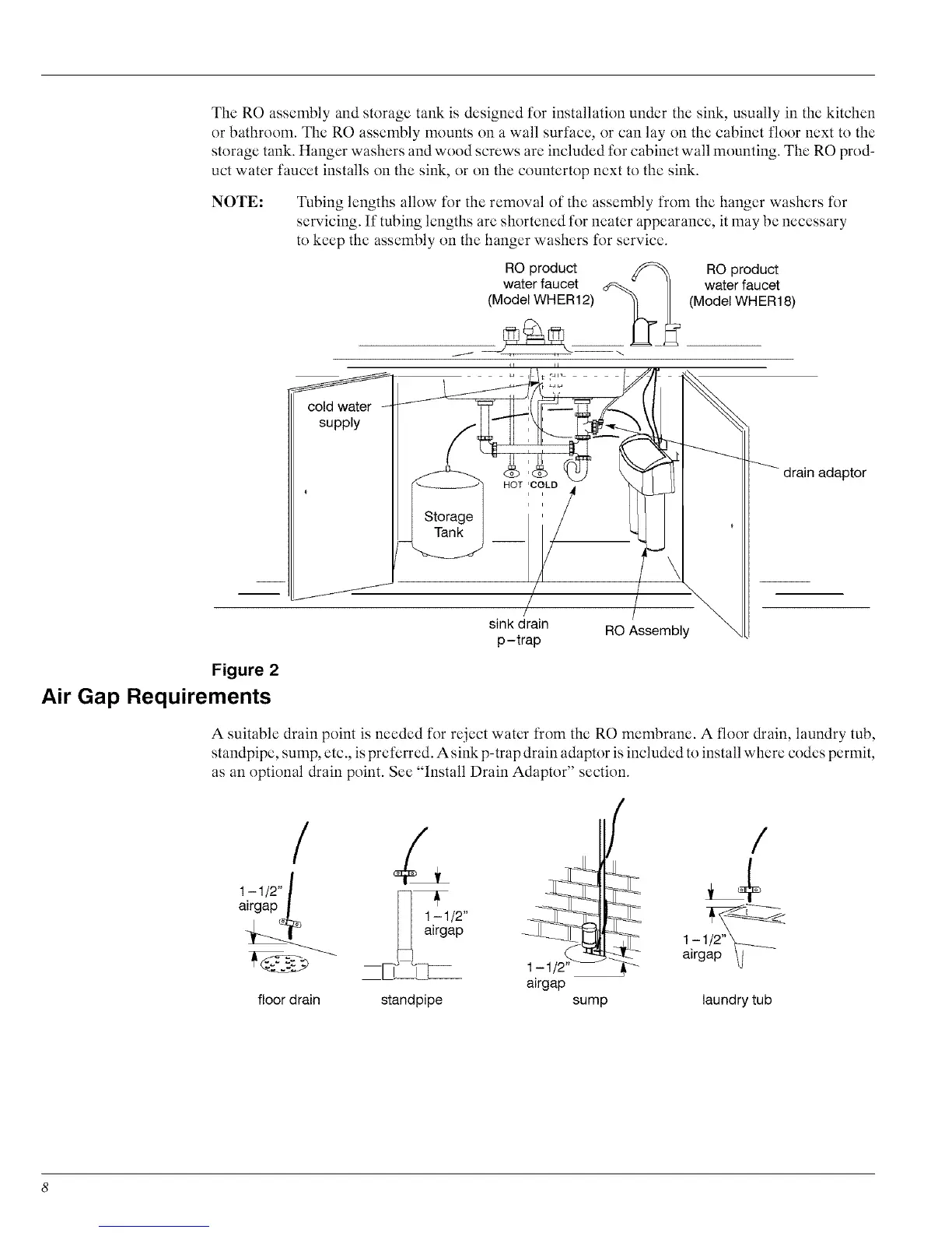storage tank. Hanger washers and wood screws are included fk)r cabinet wall mounting. The RO prod-