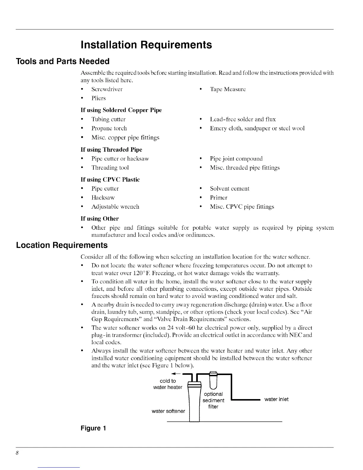 • The water softener works on 24 volt-60 hz electrical power only, supplied by a direct