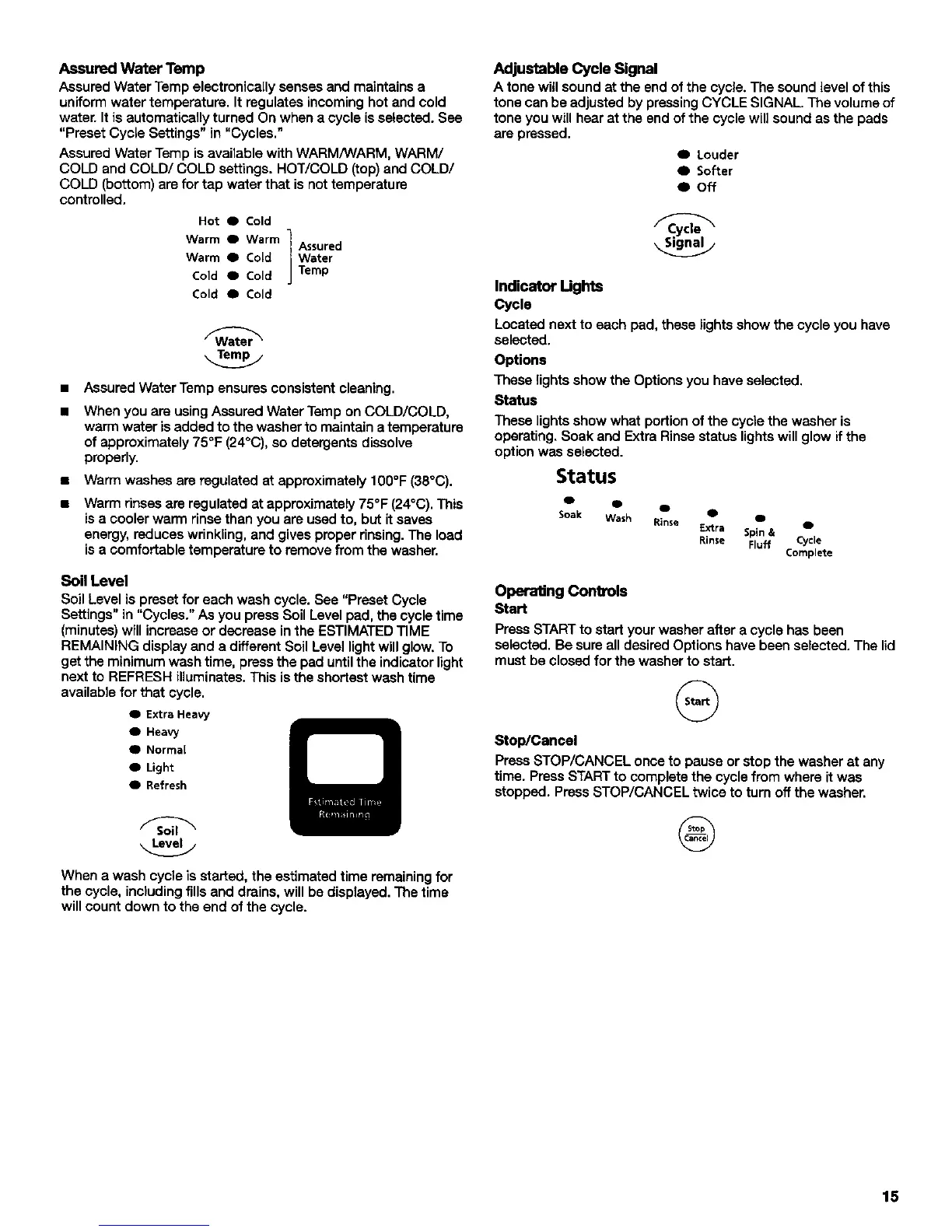 Soil Level is preset for each wash cycle. See "Preset Cycle