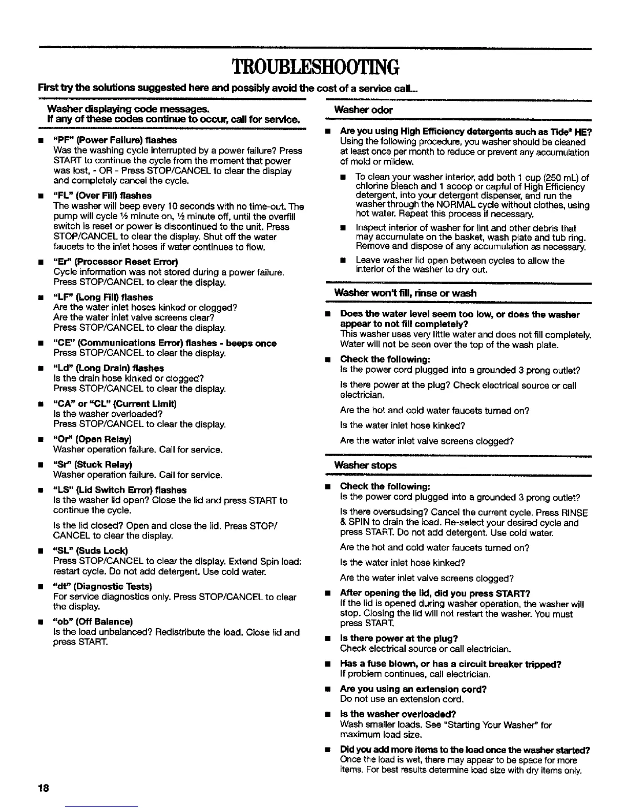 l Are you using High Efficiency detergents such as Tide®HE?