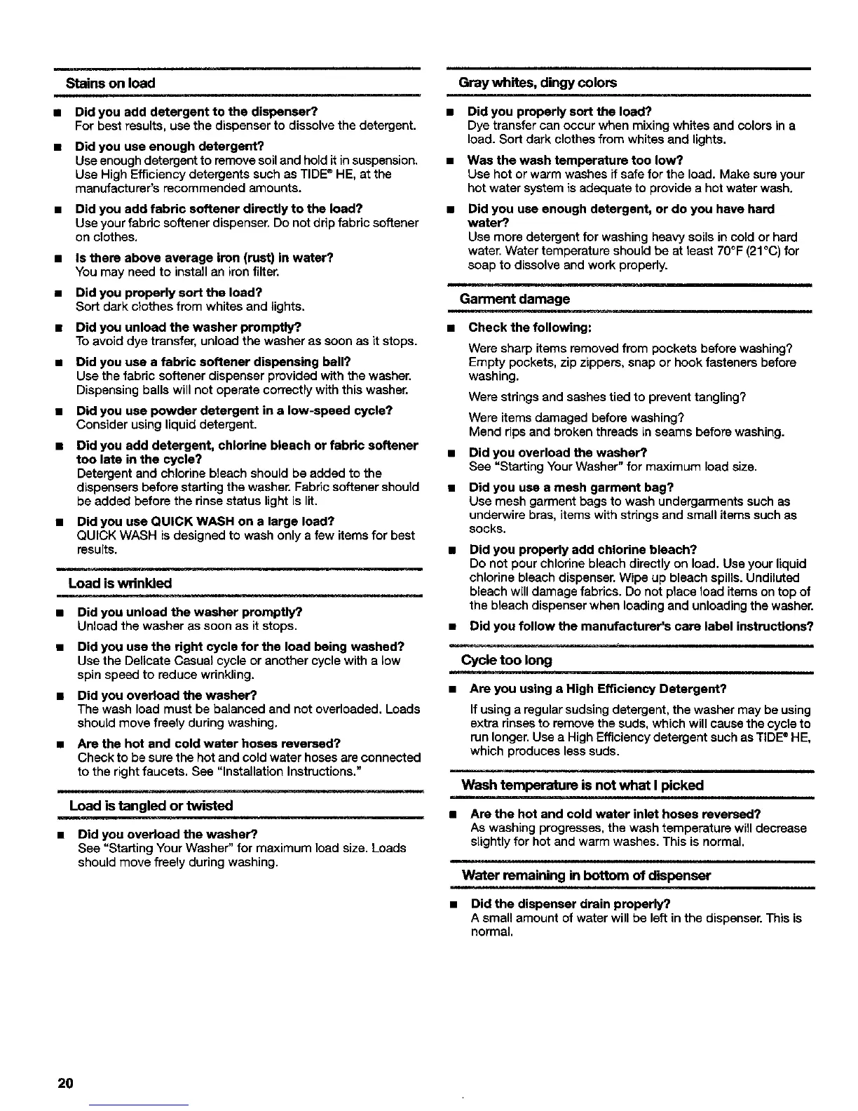 • Are you using a High Efficiency Detergent?