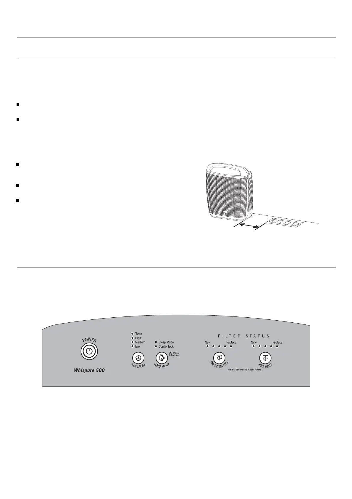 Ne pas bloquer les évents ni placer le purificateur d’air sur