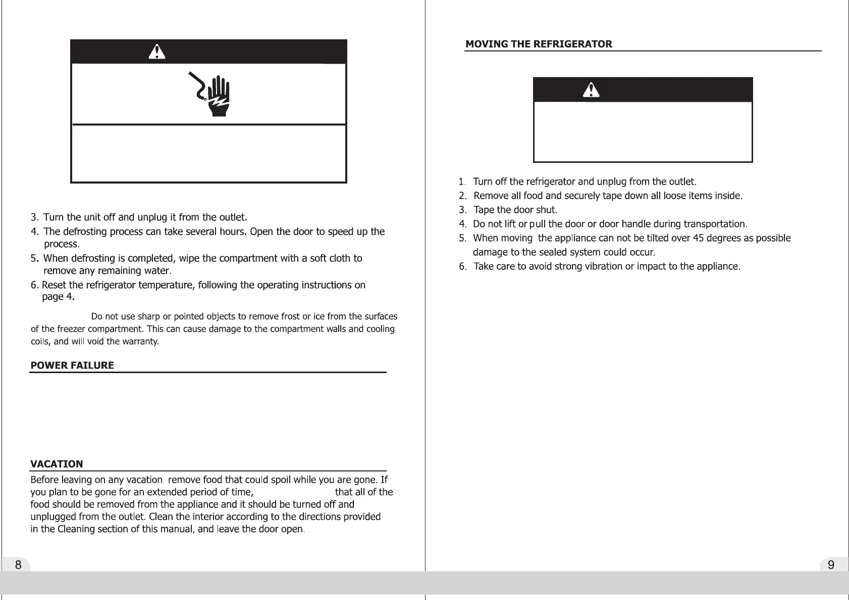 in the refrigerator or freezer before resuming use any spoiled or thawed food