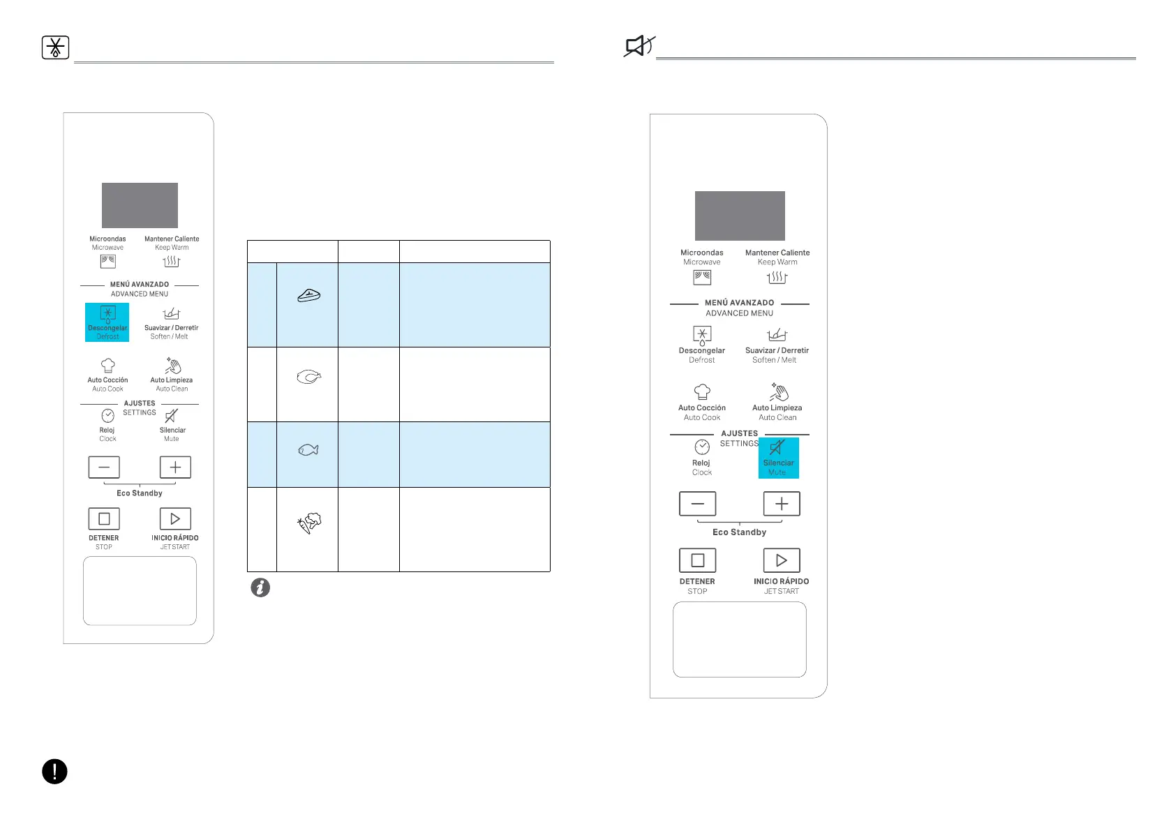 siguiente tabla y pulse JET START (Inicio rápido) para