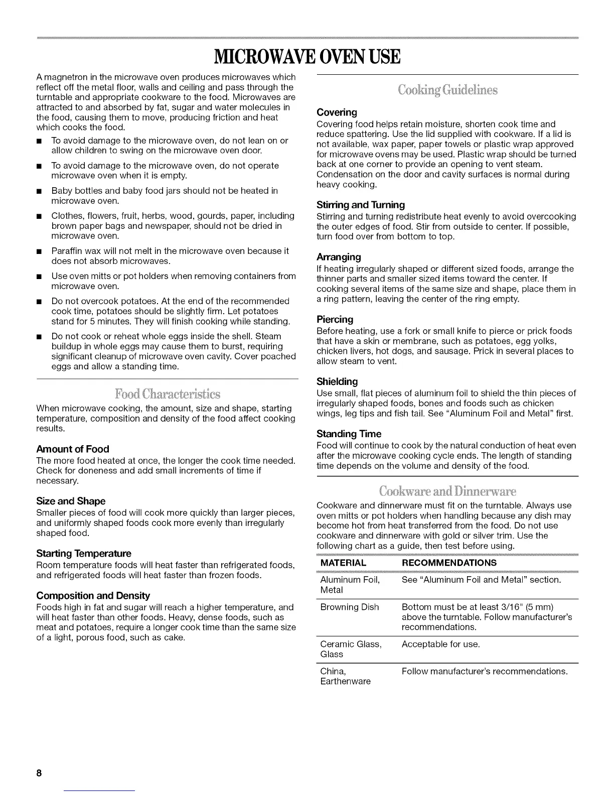 turntable and appropriate cookware to the food. Microwaves are