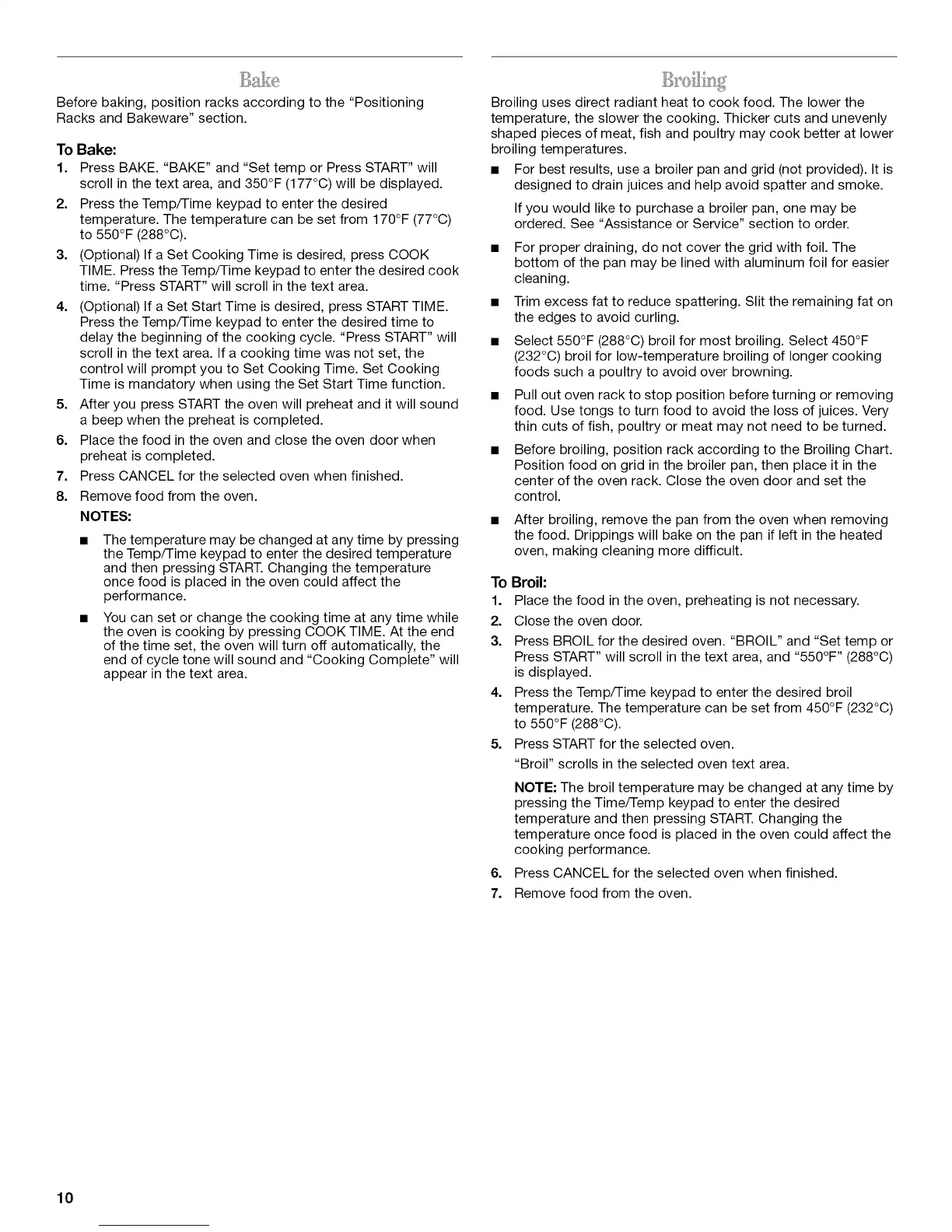 • Select 550°F (288°C) broil for most broiling. Select 450°F