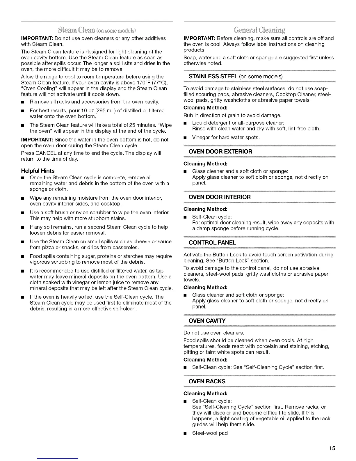 • Self-Clean cycle: See "Self-Cleaning Cycle" section first.