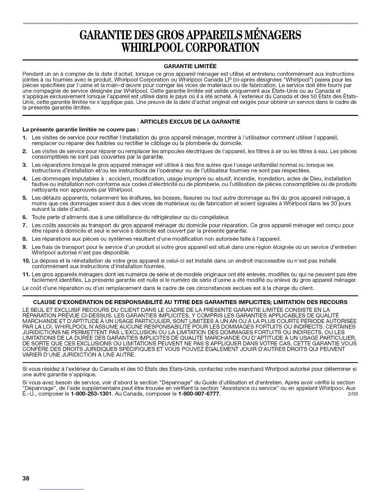 E.-U., composer le 1-800-253-1301. Au Canada, composer le 1-800-807-6777. 2/09