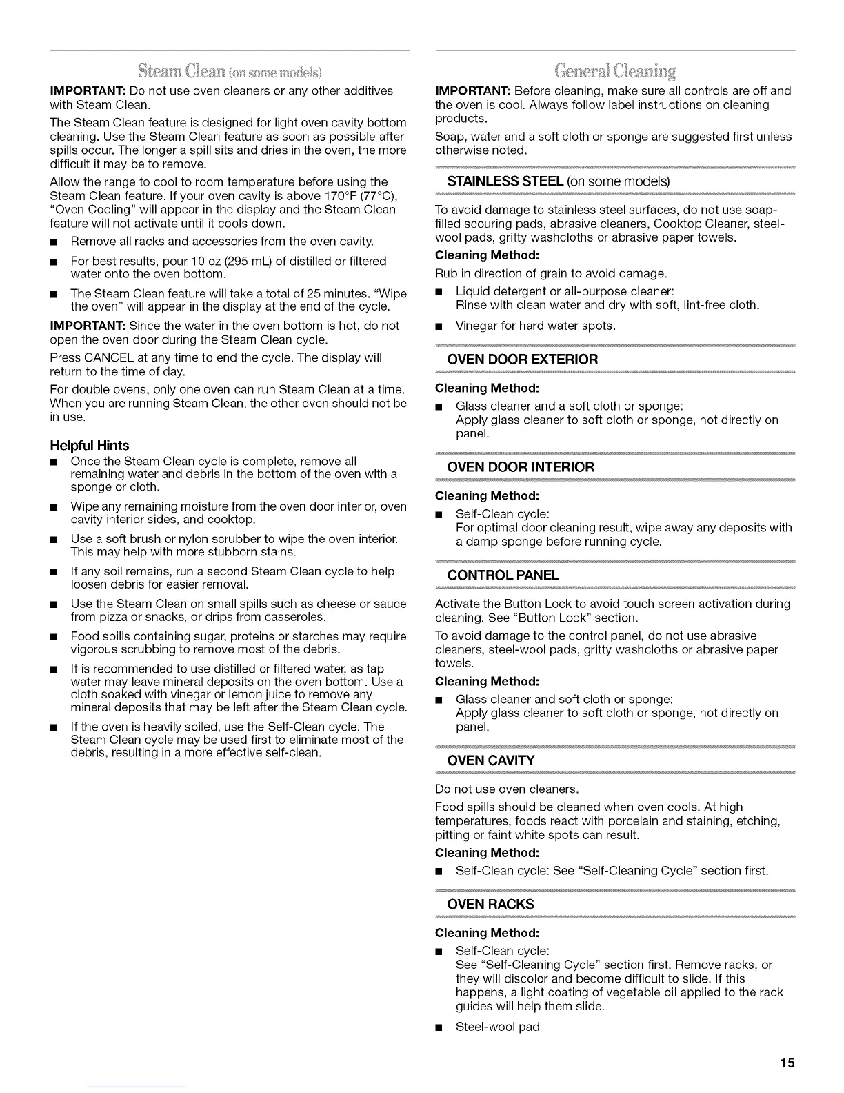 • Self-Clean cycle: See "Self-Cleaning Cycle" section first.