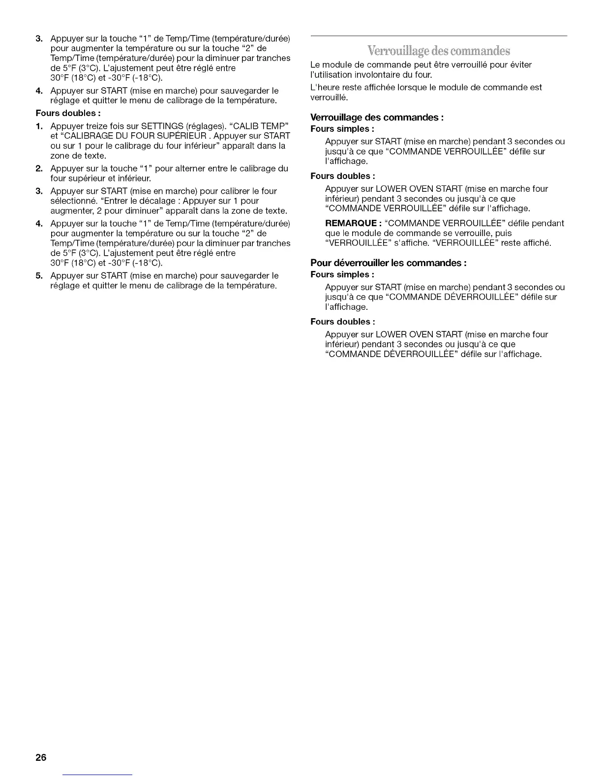 ou sur 1 pour le calibrage du four inferieur" apparait dans la