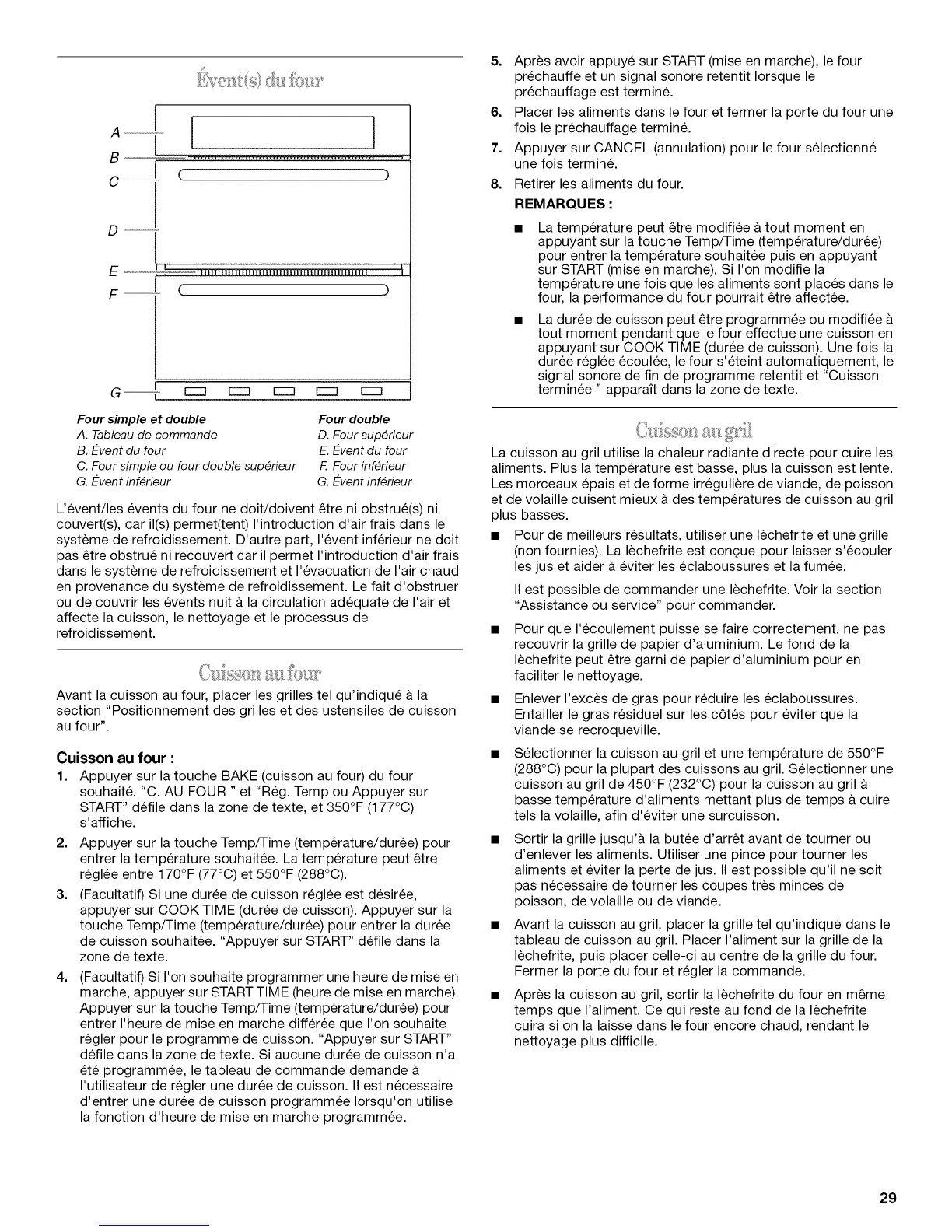 Uevent/les events du four ne doit/doivent _tre ni obstrue(s) ni