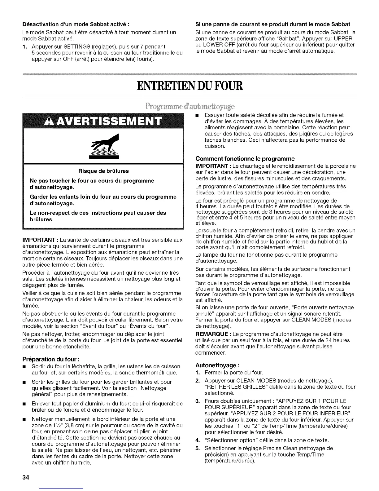 pas durant le programme d'autonettoyage.